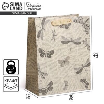 Пакет подарочный крафтовый, упаковка, «Бабочки», 18 х 23 х 10 см Дарите Счастье