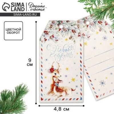 Шильдик на подарок Новый год «Оленята» 4.8×9.0 см Дарите Счастье