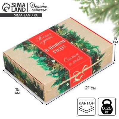 Коробка подарочная новогодняя складная «Тепла и уюта в новом году!», 21 х 15 х 5 см Дарите Счастье
