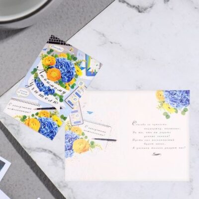 Открытка «Любимому Учителю!» тиснение, конгрев, цветы, блокнот, 25,1 х 19,4 см Мир открыток