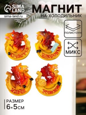 Магнит полистоун «Лошадка с монетами и подковой» МИКС 5,5х6,5 см
