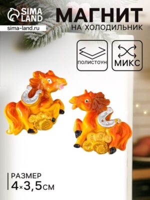 Магнит полистоун «Коняшка с монетами и подковой» МИКС 3,5х4 см