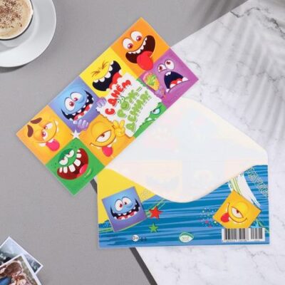 Конверт для денег «С Днём Рождения!» глиттер, смайлы, 20,7х23 см Мир открыток