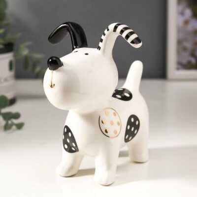 Сувенир керамика «Щенок в заплатках» бело-чёрный с золотом 12,8х8,5х13,5 см