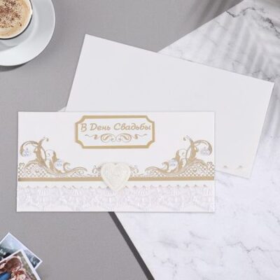 Конверт для денег «В День Свадьбы!» ручная работа, сердечко, 8х16 см Стильная открытка