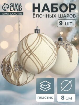 Набор шаров пластик d-8 см, 9 шт «Бархат. Фестиваль» сияние, белый Зимнее волшебство