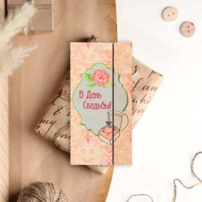 Конверт деревянный резной «В День Свадьбы!» кольцо, 8х16 см Стильная открытка