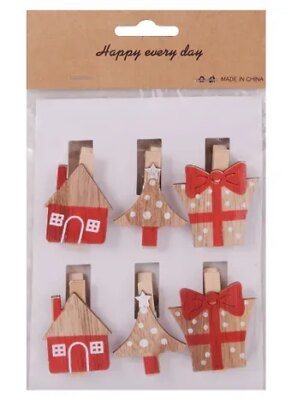 Прищепки Новогодние красные (дом, елка, подарок ), 6 шт,4,5 х 3 см ( дерево)