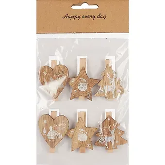 Прищепки Новогодние (сердце, звезда, елочка), 6 шт, 3,5 х 5 см( дерево)