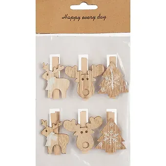 Прищепки Новогодние (два оленя, елочка), 6шт, 3,5 х 5 см( дерево)