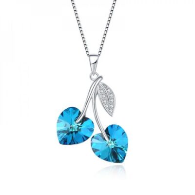 Swarovski crystals, a wonderful gift for Valentines Day! Luxurious thin chain with Swarovski Double Hearts Pendant Blue. The chain is solid.