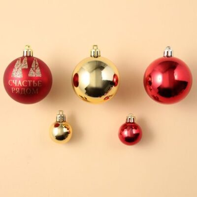 Шары ёлочные новогодние, d=3 и d=6, 15 шт., красный, золотой Сима-ленд