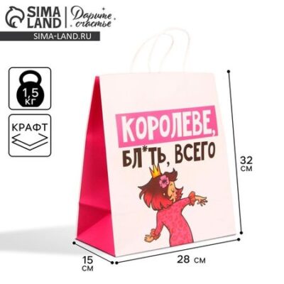 Пакет подарочный крафтовый, упаковка, «Неси неси», 28 х 32 х 15 см Дарите Счастье