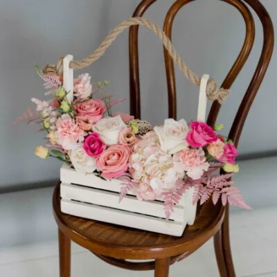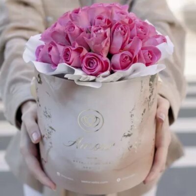 Букет в бежевой шляпной коробке Amour Mini из 31 розовой розы (Кения) Standart Семицветик
