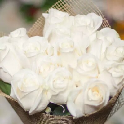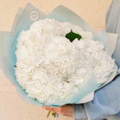 Очаровательный букет из 3 белых гортензий в бежевой шляпной коробке с доставкой для самого любимого человека! Нежность в каждом лепестке! Семицветик