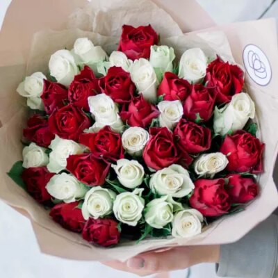 41 красная и белая роза микс (Кения) 40 см Standart Семицветик