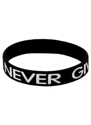 Браслет Never give up (черный) (силикон) (20,2 см) (12-BaoAn-202204-11)