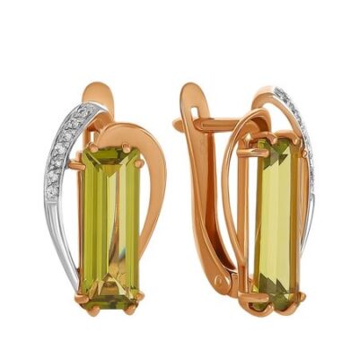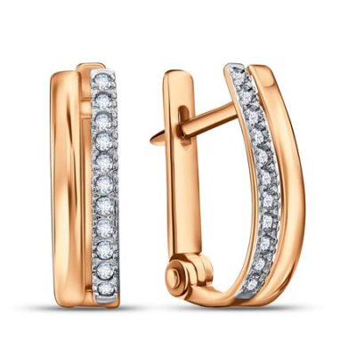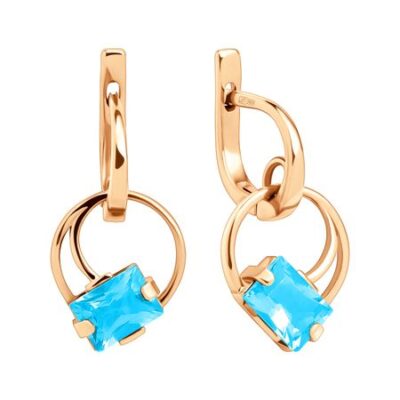 Золотые серьги с кристаллами и фианитами с родированием 585*Золотой