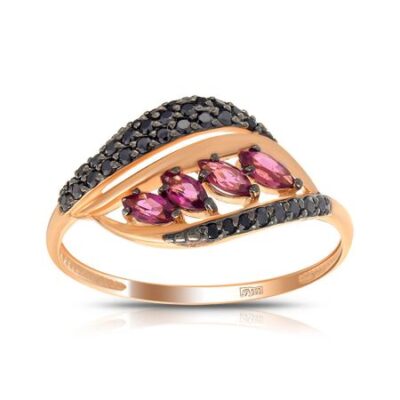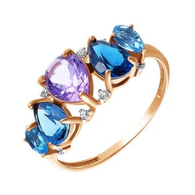 Золотое кольцо с аметистом и топазами с фианитами 585*Золотой