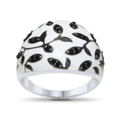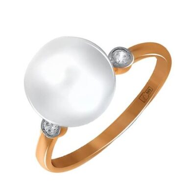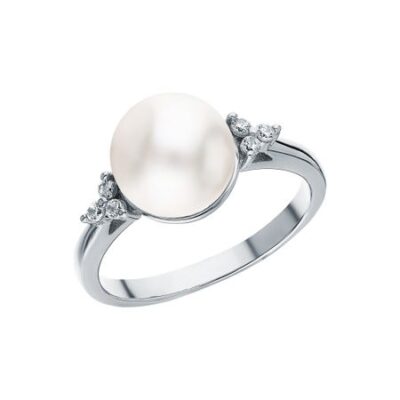 Серебряное кольцо с жемчугом и фианитами с родированием 585*Золотой