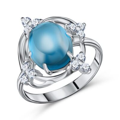 Серебряное кольцо с топазом и фианитами с родированием 585*Золотой