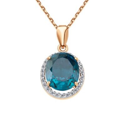 Золотая подвеска с London топазом и фианитами с родированием SOKOLOV