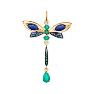 Золотая подвеска с сапфирами и агатами с фианитами и родированием SOKOLOV