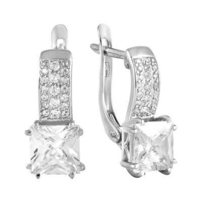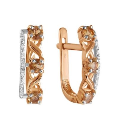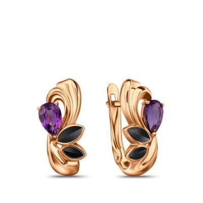 Золотые серьги с аметистами и алмазной гранью с родированием 585*Золотой