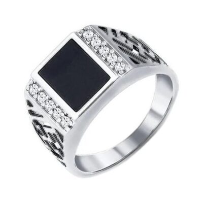Серебряное кольцо с ювелирными кристаллами и фианитами с родированием 585*Золотой