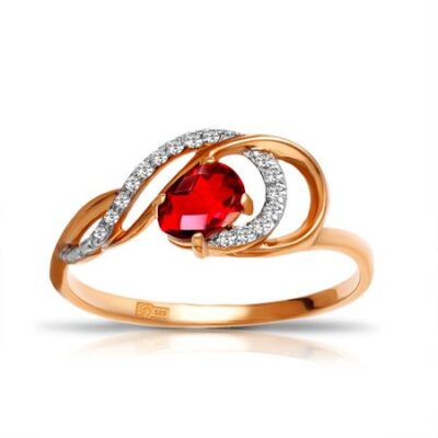 Серебряное кольцо с ювелирным кристаллом и фианитами 585*Золотой