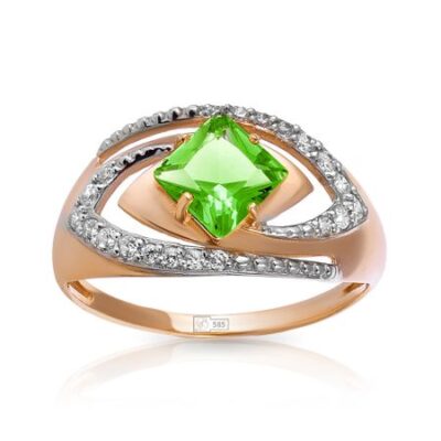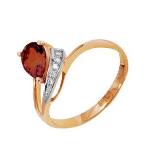 Золотое кольцо с гранатом и фианитами с родированием KARATOV