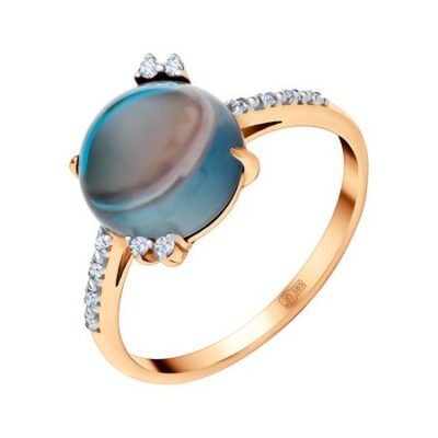 Золотое кольцо с London топазом и бриллиантами с родированием 585*Золотой