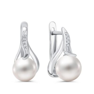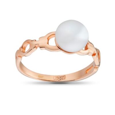 Золотое кольцо с жемчугом и фианитами 585*Золотой