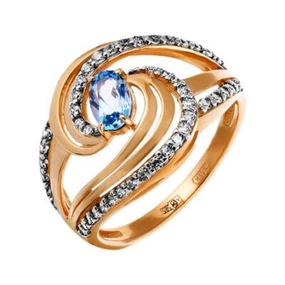 Кольцо из золота с топазом и фианитами 585*Золотой