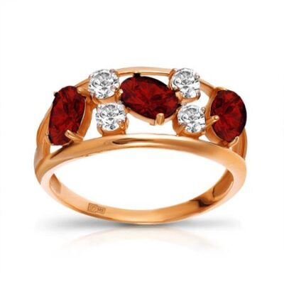 Кольцо из золота с гранатом и фианитами 585*Золотой