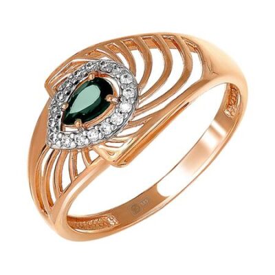 Серебряное кольцо с керамикой и фианитом 585*Золотой