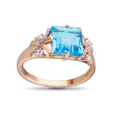 Золотое кольцо с топазом Swiss и фианитами с родированием TALANT