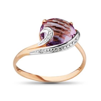 Кольцо из золота с аметистом и фианитами 585*Золотой