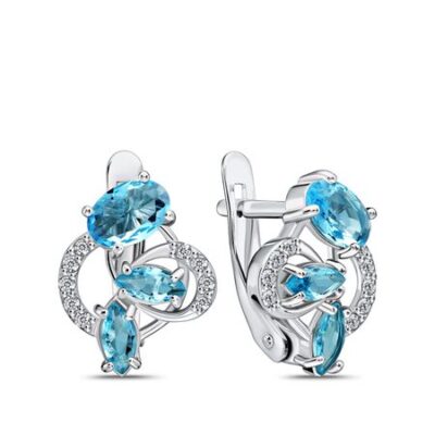 Серебряные серьги с алпанитами и фианитами 585*Золотой
