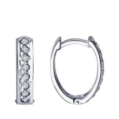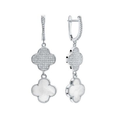 Серебряные серьги с перламутром и фианитами с родированием 585*Золотой