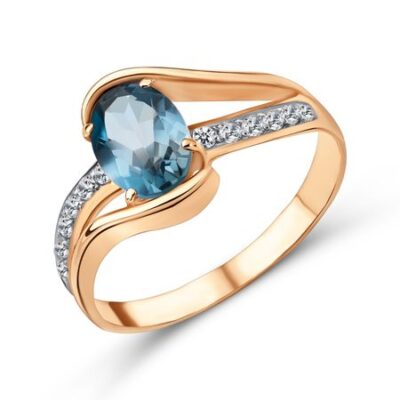 Серебряные серьги с топазами и фианитами с позолотой 585*Золотой