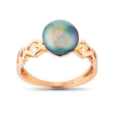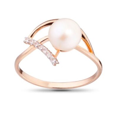 Кольцо из золота с жемчугом и фианитами 585*Золотой