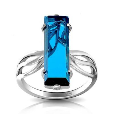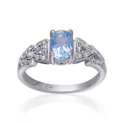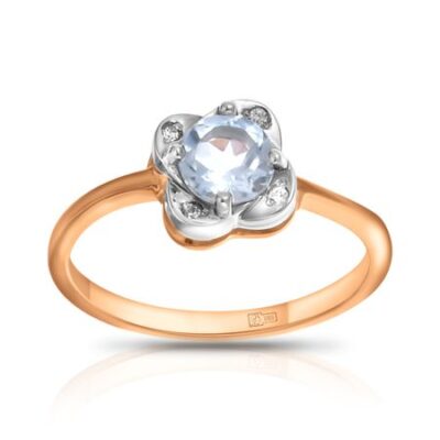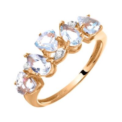 Золотое кольцо с топазами Sky и фианитами 585*Золотой