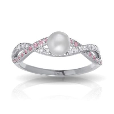 Кольцо из серебра с жемчугом и фианитами 585*Золотой