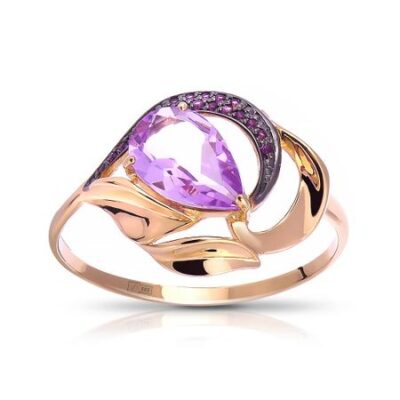 Кольцо из золота с аметистом и фианитами 585*Золотой
