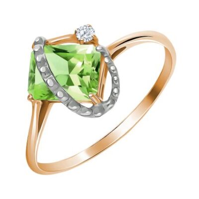Золотое кольцо с хризолитом и фианитом с родированием 585*Золотой