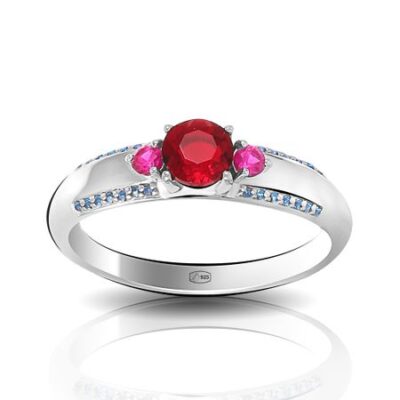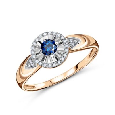 Золотое кольцо с сапфиром и бриллиантами с родированием и алмазной гранью 585*Золотой
