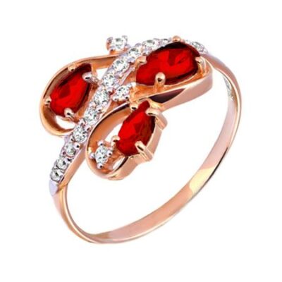 Золотое кольцо с гранатом и фианитами 585*Золотой