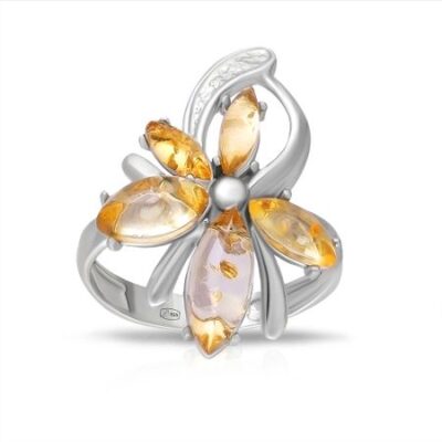 Кольцо из серебра с янтарем 585*Золотой