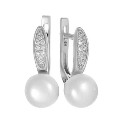 Серьги из серебра с жемчугом и фианитами 585*Золотой